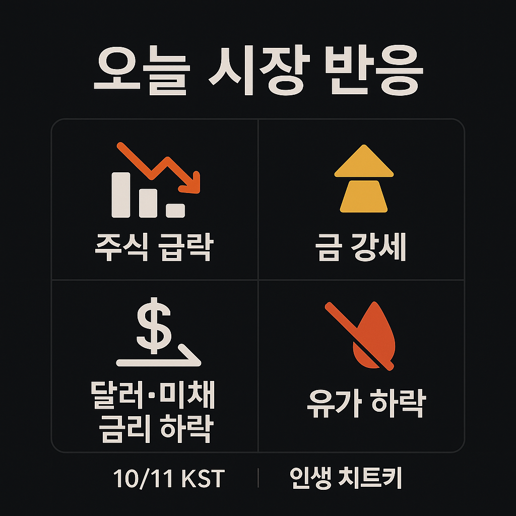 - 달러·미 국채: 위험회피 강화로 달러 약세·미 국채 금리 하락(가격 상승) 흐름이 관찰됐습니다.