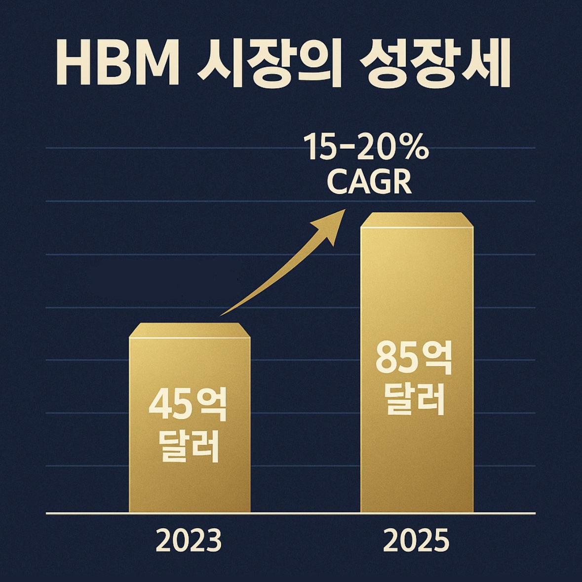 시장조사기관 옴디아(Omdia)에 따르면, 글로벌 HBM 시장은 2023년 약 45억 달러에서 2025년 85억 달러 이상으로 성장할 전망입니다.